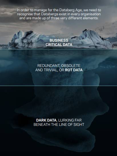 ►我们只能管理我们看得见的数据,那么对于那些隐藏于表面之下,难以轻易发现的数据“冰山”,我们该如何管理呢?毫无疑问,放任数据“冰山”的行为将使组织重蹈“泰坦尼克号”的悲剧,那么数据“冰山”如此可怕,它究竟是什么呢?