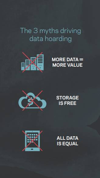 ►那么是什么原因导致了ROT和暗数据出现在我们的数据“冰山”之中?简短来说,数据囤积。我们发现以下三点可以帮助理解数据囤积的原因: