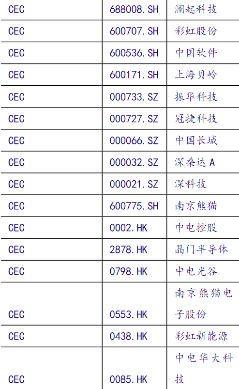 1、CEC(中国电子信息产业集团有限公司,简称“中国电子”)旗下上市公司。