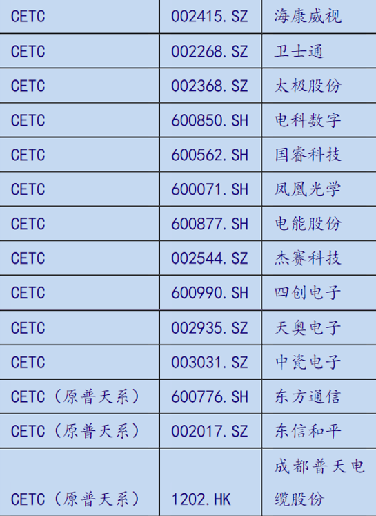 2、CETC(中国电子科技集团有限公司,简称“中国电科”)旗下上市公司。
