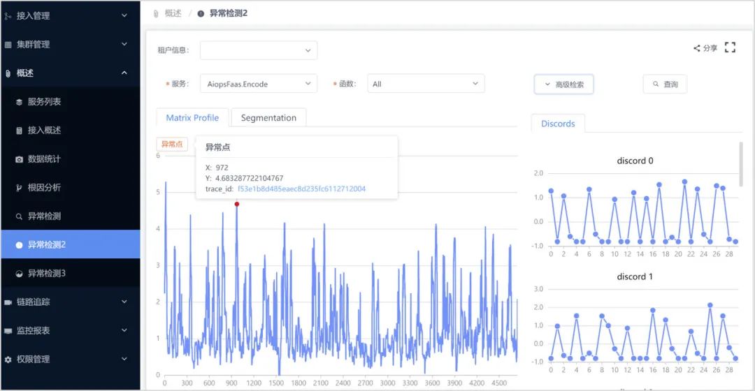 就异常检测而言,基于领域的传统 IT 管理解决方案往往只能在单一或数个维度根据人工规则进行判断,无法充分利用多种数据间的潜在关联性,也很难考虑到一些特殊情况,因而无法智能化地提供可靠、高可用的洞察和预测性分析。以玄图可观测性平台为基础的 AIOps 的研究旨在使用智能化的分析手段对 Trace/Metric/Log 数据进行分析,辅助传统规则方法,以更加精准识别服务的异常点,减少误告。