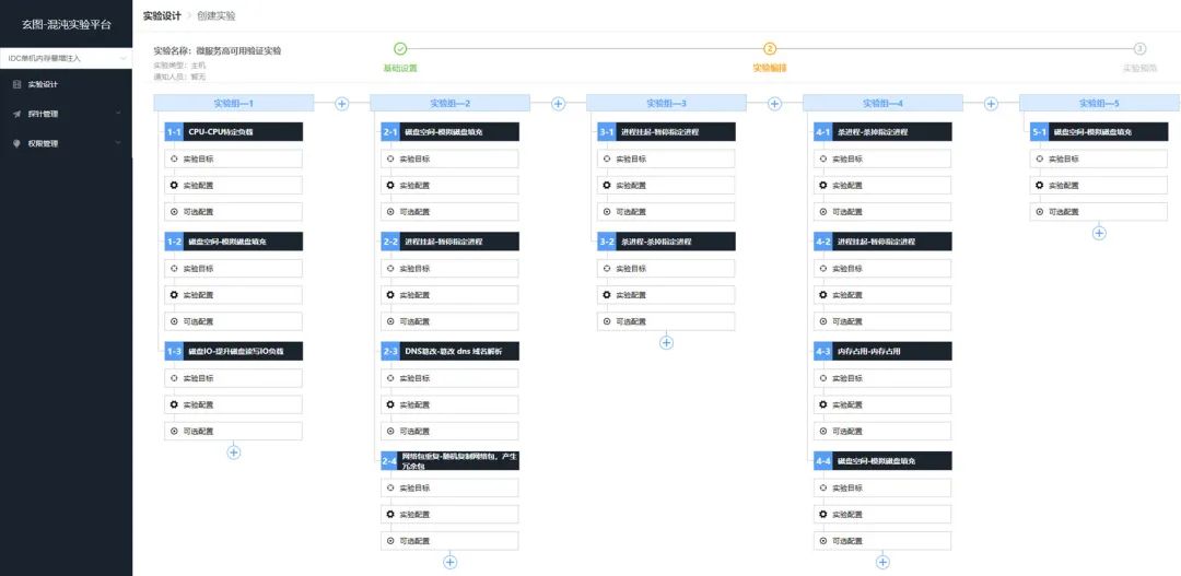 在实际场景中,我们一般需要同时模拟多个故障,也就是需要把多个故障编排在一起并行或者串行执行,玄图混沌平台支持拖拉拽完成复杂故障场景编排,可以同时模拟多个服务,多种类型故障,实现了分钟级复杂故障事件演练。