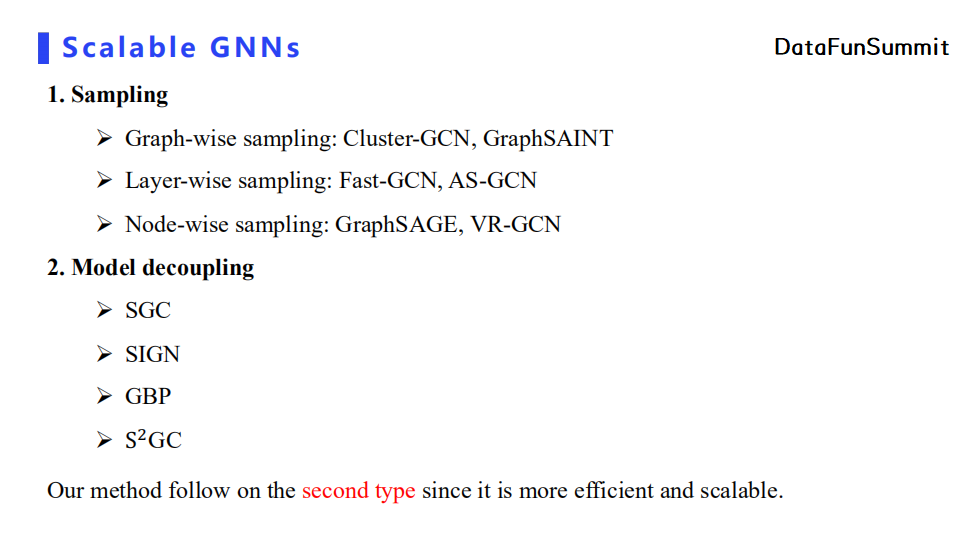 首先,我们的目的之一是希望GNN能够有高可扩展性。达到这一目标的传统做法是采样以及模型解耦。采样分为三个层次:图级别采样、层级别采样、节点级别采样。而模型解耦的典型工作有:SGC、SIGN、GBP、S2GC。我们的工作属于模型解耦的类型,因为这种做法可以使模型即可扩展又保持高效。