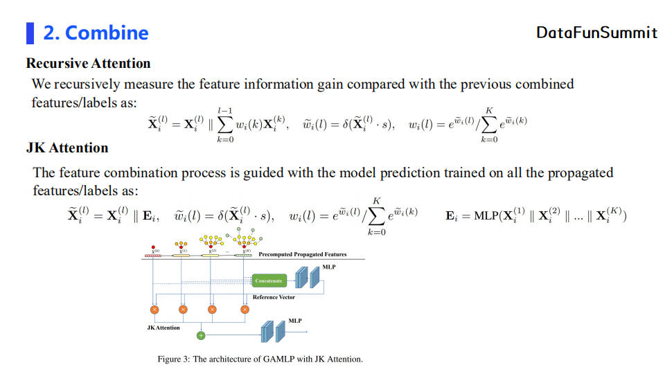我们提出了两种attention机制:Recursive Attention和JK Attention。前者在计算第l层特征的重要性时拼接了之前所有层的加权特征。这样计算得到的权重值的物理意义为:当前层特征有多少比例是之前所有层所不包含的信息。JK Attention则模仿了JK Net的设计,将每个节点不同层的特征拼接并经过一个MLP进行变换,并将输出特征作为一个reference来衡量当前层的节点特征的重要性。JK Attention得到的权重值的物理意义为:当前层的特征信息相较于所有层的特征信息,其信息量较大的特征占比有多少。