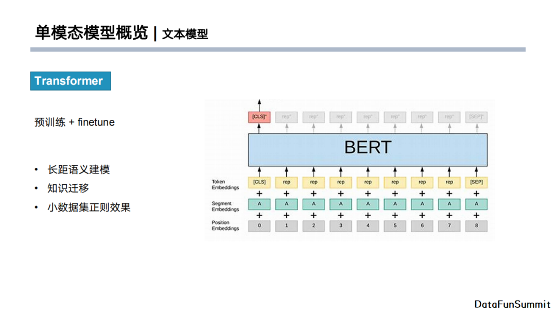 随着近年来基于大数据预训练模型的推广,大部分情况下我们都会尝试在大数据集中进行预训练,再在目标数据集中进行finetune。基于Transformer的模型可以提供长距离语义建模,另外由于它是经过在更大数据环境下的预训练,所以它包含的一些知识可以随着模型迁移至目标任务中。尤其是在一些小的数据集中,它实际上也能起到正则的效果。