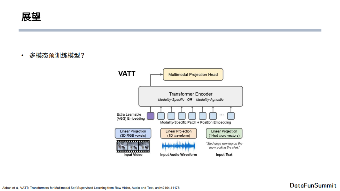 A:实际上这是完全可行的。之前提到的多模态融合方法完全可以迁移至三个模态的特征融合,本质上没有很大区别。只是在多模态融合之前,文本是偏离散的形式,音频是偏连续的数据,而图像是以像素为粒度的信息呈现形式。所以如果使用early fusion,我们需要将不同模态的数据提取特征并将它们统一到同一空间中来避免表示空间的差异。三模态数据当然也可以使用late fusion进行融合,即使用不同的特征提取网络,得到的模态特征进行简单拼接即可。最近基于大规模数据预训练的方法是基于Transformer来做模态特征融合的。它本质上就是将音频和图像token化,再将其输入至Transformer中对模型进行训练。
