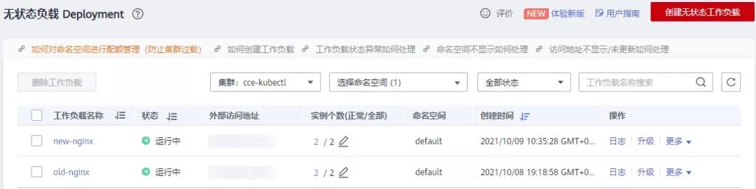 你可以登录云容器引擎控制台,在“工作负载 > 无状态负载 Deployment”页面查看部署情况。