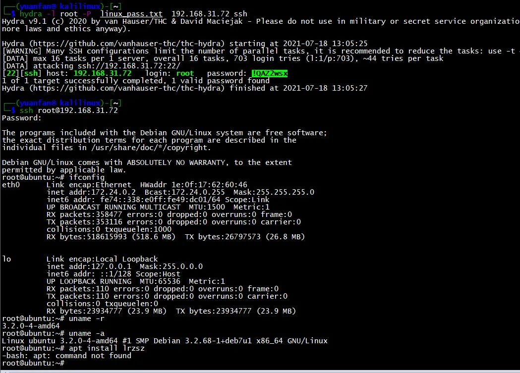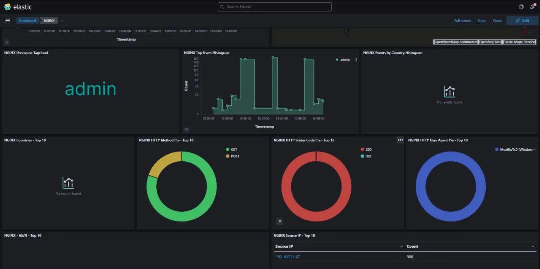 kali机器尝试hydra,nmap扫描等攻击行为测试 然后可以在kibana上查看到攻击报表汇总数据