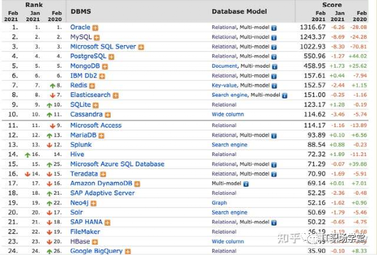关系型数据库 | 无 | Oracle、MySQL、SQL Server、DB2、 PostgreSQL、Informix、Sybase |