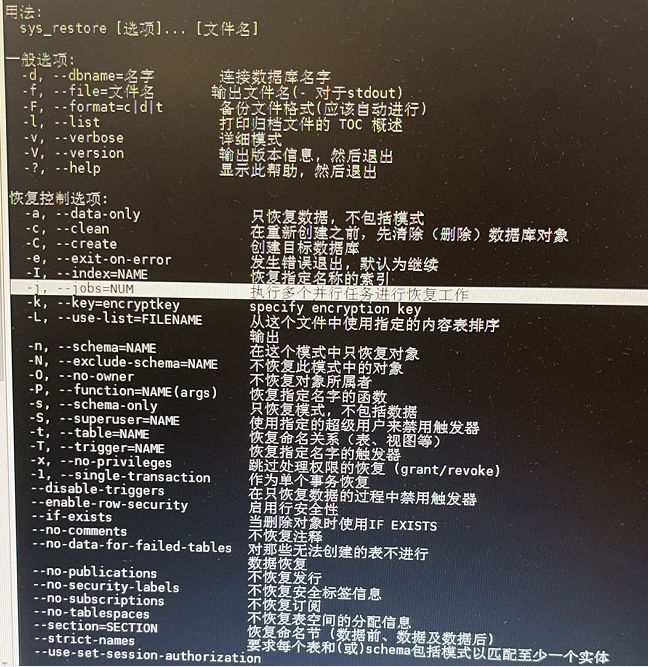 可在逻辑备份、恢复命令行中通过-j参数指定执行多个并行任务。