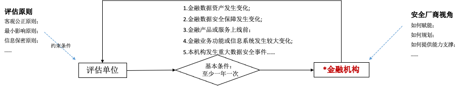 本文希望通过对此规范的解读让复杂的问题抽象化,从抽象到具体、从具体到落地的角度逐步进行解读,明确此规范的核心引擎是什么(即:评估流程、评估方法、评估内容组成综合考量)?评估单位主体应如何驾驭此核心引擎?金融机构又应如何驱动此核心引擎?什么条件下需要启动此核心引擎?安全厂商视角下又应如何辅助金融机构凌驾此核心引擎?