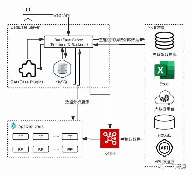数据引擎:支持直连模式、本地模式(基于 Apache Doris / Kettle 实现);