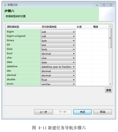 同时还提供了对表级数据类型的设置功能,图 4-9 中,对该表中某一列单独设置其类型对应关系