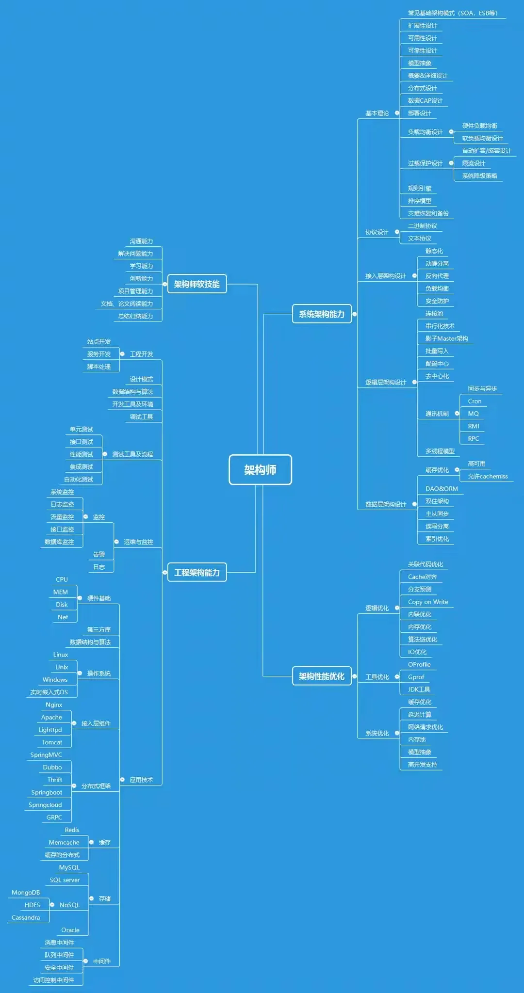 软件架构师技能蓝图,非常的齐全,包括给个方面