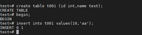 3. 连接数据库查看事务,查看t001的表数据---事务中断,数据没有插入。