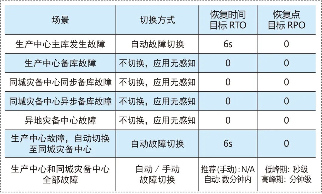 ● 对于中心级别故障,容灾切换时保证数据库数据一致性。● 对于地域级别灾难,该方案可将业务恢复至异地灾备数据,尽可能保全业务数据不丢失。