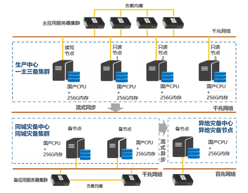 异地灾备中心:通常在离生产中心几百或者上千公里的地方建立异地灾备中心,应对区域性重大灾难,实现异步复制灾备,是两地三中心容灾方案的第二级容灾保护。