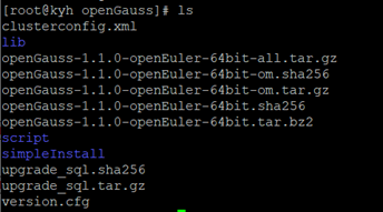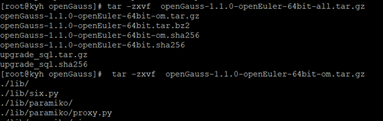 安装包所在的目录下,解压安装包。先解压openGauss-1.1.0-openEuler-64bit-all.tar.gz包。再先解压openGauss-1.1.0-openEuler-64bit-om.tar.gz包。