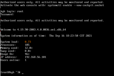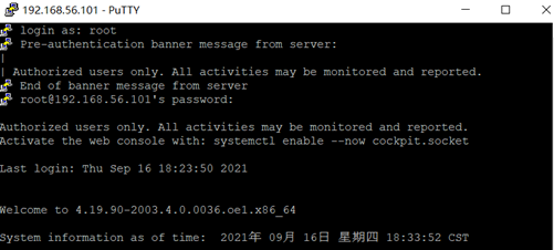 为了操作方便,可以使用SSH工具从本地电脑通过配置enp0s3网卡的IP地址来连接虚拟机,并使用ROOT用户来登录。
