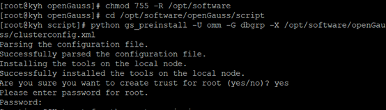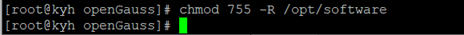 安装包解压后,会在/opt/software/openGauss路径下自动生成script子目录,并且在script目录下生成gs_preinstall等各种OM工具脚本。更改权限。