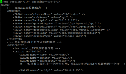 创建XML配置文件,用于数据库安装。将以下内容添加进clusterconfig.xml文件中。