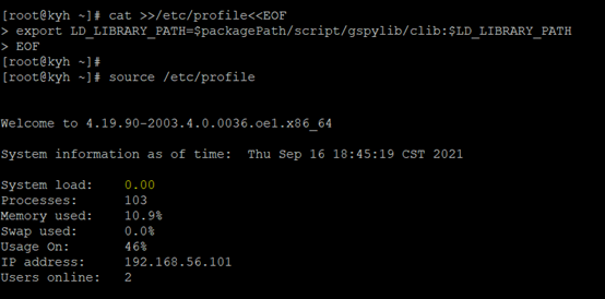 用init 6 重启下虚拟机。过段时间虚拟机重启好后,再次使用SSH工具从本地电脑通过配置enp0s3网卡的IP地址来连接虚拟机,并使用ROOT用户来登录,然后接着以下操作。