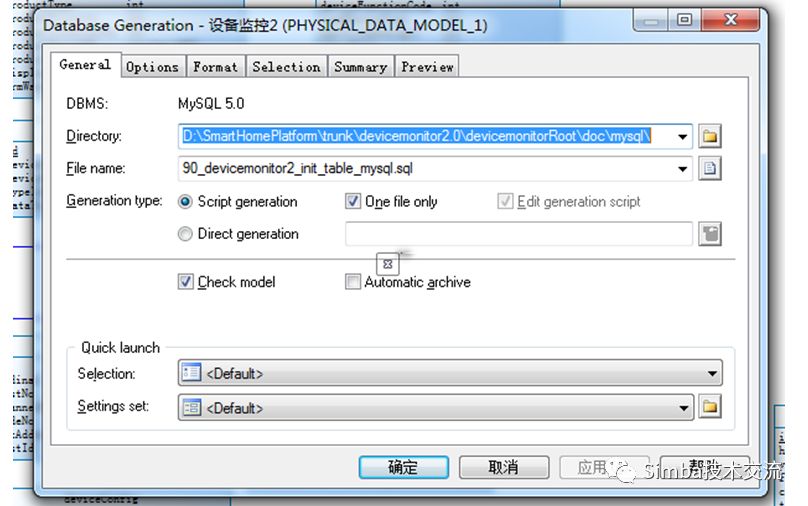 双击powerdesigner_improve1.0.exe程序,输入包名并回车(若使用默认的com.simba则无需输入直接回车跳过即可)。同目录下会自动生成一个model文件夹,里面为生成好的javabean,可以直接使用,无需修改。