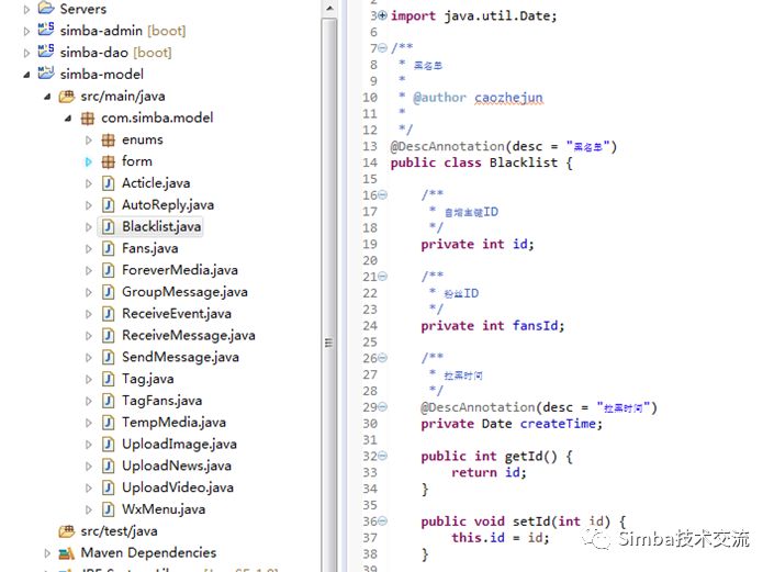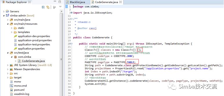 代码生成器的源码在simba-codegenerate目录中,有兴趣的同学可以自己看看,主要就是通过freemarker实现的。