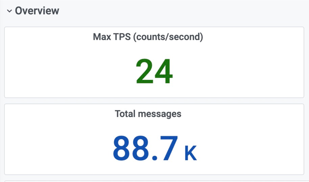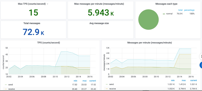 查看实例据总的消息收发量、TPS、消息类型分布情况。