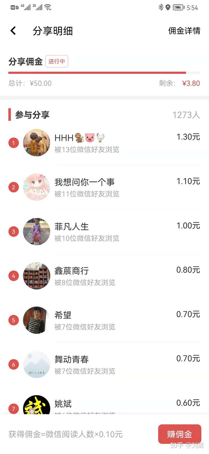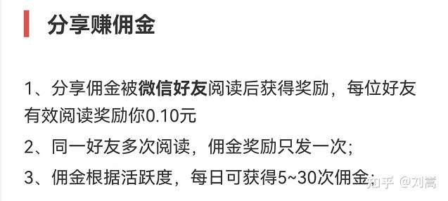 这点他们比较巧妙,不是你帮我转发了就给钱,而是你转发出去,有人点击查看了才给钱,每个有效查看会获得1毛钱奖励,比如A有1000好友,转发后有100人查看了,就会获得10元奖励,这样按实际浏览效果进行支付是最为公平的。
