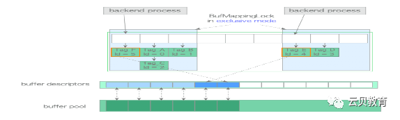 typedef struct sbufdesc{BufferTag tag; /* 存储在缓冲区中页面的标识 */BufFlags flags; /* 标记位 */uint16 usage_count; /* 时钟扫描要用到的引用计数 */unsigned refcount; /* 在本缓冲区上持有PIN的后端进程数 */int wait_backend_pid; /* 等着PIN本缓冲区的后端进程PID */slock_t buf_hdr_lock; /* 用于保护上述字段的锁 */int buf_id; /* 缓冲的索引编号 (从0开始) */int freeNext; /* 空闲链表中的链接 */LWLockId io_in_progress_lock; /* 等待I/O完成的锁 */LWLockId content_lock; /* 访问缓冲区内容的锁 */} BufferDesc;