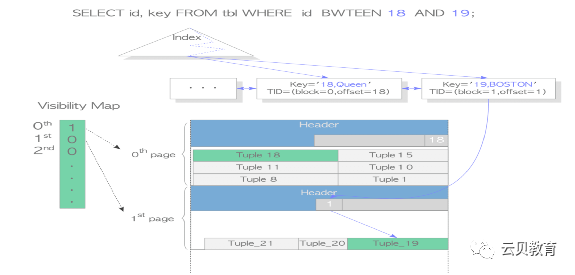 下面通过一个具体的例子,说明PostgreSQL中的index-only扫描是如何进行的。