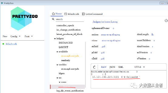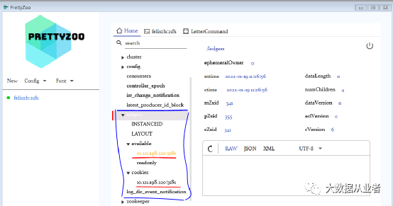 相应的会在zookeeper生成/ledgers节点,如图(其他节点是Kafka创建的):