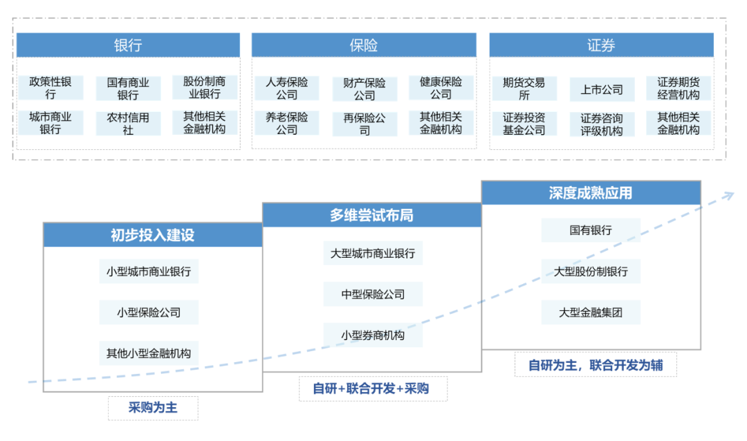 金融行业已形成标杆性示范效应,建立技术与业务的联动发展模式。