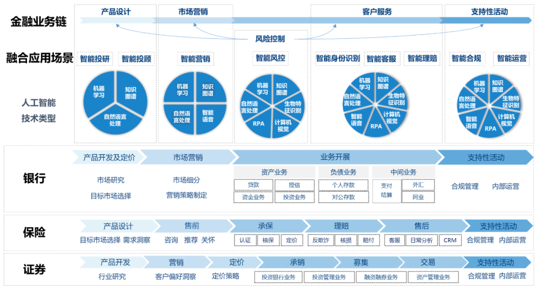 人工智能逐步渗透业务链五大个环节,业务赋能逐步升级。