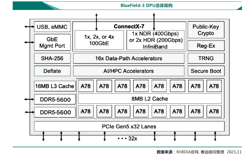 BlueField-3 DPU的出现解决了目前产业无法完全确保数据安全的问题。BlueField-3 DPU完全承接了BlueField-2 DPU的先进特性,并将其进行了性能加强与扩展,如下图。