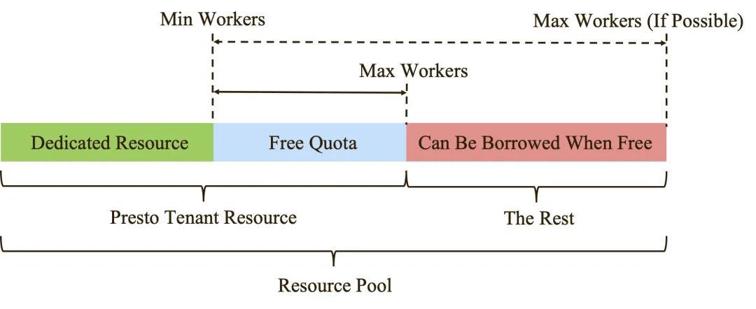 天穹 Presto 集群有单独的租户资源,能保证集群的资源下限(Dedicated Resource),通过 K8s HPA Controller 感知 Presto Worker 的 CPU 和内存资源使用情况,实现 Worker Pod 的动态扩缩容。当白天 Presto 任务量较多需要更多资源时,可以动态扩容 Worker 至租户的资源上限,如果其他业务租户有空闲的资源,也可以继续"借用"。当晚上 Presto 集群空闲时,可以动态缩容 Worker,将资源释放给其他业务租户使用,使资源池的利用率最大化。