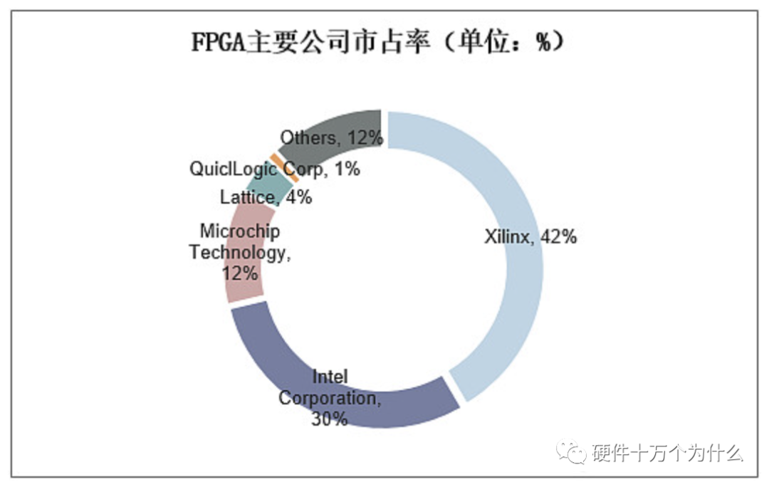 在FPGA市场中,呈现Xilinx与英特尔(Altera)的双寡头垄断。目前FPGA的主要产业链供应商仍然集中在欧美地区,以Altera(被Intel收购),和Xilinx两家为主。两家合计额的市场份额占到72%。