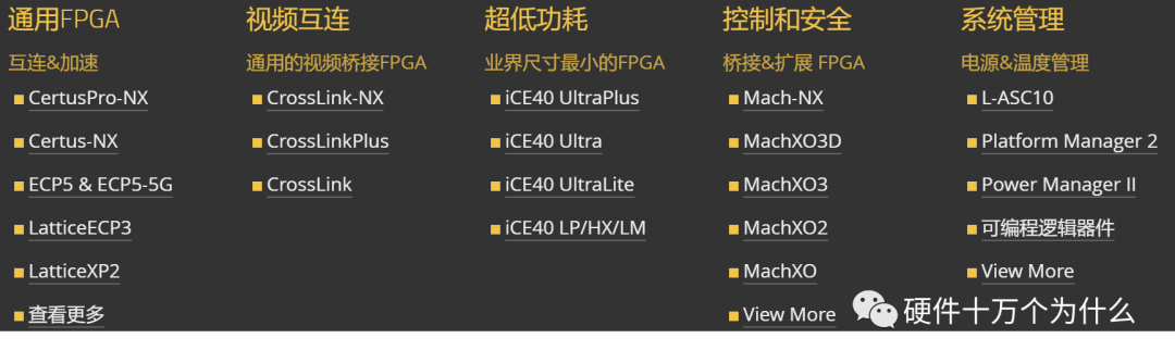 MAXII 系列为CPLD, Altera一度以其CPLD闻名,如果选用CPLD,毫不犹豫用Altera的,至于CPLD和FPGA的区别,在此就不多说了。后面文章会有介绍。最新为Cyclone10,定位与消费类产品,和Spartan为竞争对手,逻辑资源和接口资源都相对少,特点为性价比高。最新为Stratix10,为高端应用,和Xilinx的Virtex系列竞争。为SOC系列FPGA, 内置ARM Cotex A9的核。最新技术为20nm工艺。支持DDR4存储器接口的FPGA。Altera的Arria 10 FPGA和SoC是业界先进的能够支持这一速率DDR4存储器的FPGA,存储器性能比前一代FPGA提高了43%,比竞争20 nm FPGA高出10%。硬件设计人员现在可以使用最新的Quartus II 软件,在Arria 10 FPGA和SoC设计中实现,666 Mbps DDR4存储器数据速率。5、英特尔® Agilex™ FPGA 家族采用异构 3D 系统级封装 (SiP) 技术,集成了英特尔首款基于 10 纳米制程技术的 FPGA 架构和第二代英特尔® Hyperflex™ FPGA 架构,可将性能提升多达 40%,将数据中心、网络和边缘计算应用的功耗降低多达 40%。英特尔® Agilex™ FPGA 和 SoC 家族通过 Compute Express Link 提供了业界首个面向英特尔® 至强® 处理器的缓存和内存一致性互连技术。这项革命性的 FPGA 互连技术将为具有大量数据处理需求的内存密集型应用提供低延迟和性能优势。英特尔® Agilex™ FPGA 和 SoC 家族支持高达 112Gbps 的数据速率和第五代 PCI Express*,可加速收发器创新。英特尔® Agilex™ FPGA 和 SoC 家族为客户提供了全面的收发器产品组合,包括 28.3Gbps、58Gbps 和 112Gbps 收发器块。将收发器开发分离开来可加速产品创新。英特尔® Agilex™ FPGA 和 SoC 家族提供了一个可配置的 DSP 引擎,可提供对单精度 FP32、半精度 FP16、BFLOTA16 和 INT8 计算的增强型支持。英特尔® Agilex™ FPGA 和 SoC 家族还支持从 INT7 到 INT2 的低精度配置,以实现最大的灵活性。英特尔® Agilex™ FPGA 可编程性与 DSP 模块创新相结合,非常适合用于不断变化的人工智能工作负载。凭借成熟的嵌入式多芯片互连桥接 (EMIB) 技术,英特尔® Agilex™ FPGA 和 SoC 家族可提供面向异构芯片的高密度芯片到芯片互连,并以低成本提供高性能。由收发器、自定义 IO、自定义计算和英特尔® eASIC™ 设备块组成的大型设备块库提供了各种应用所需的敏捷性、灵活性和自定义功能。通过集成许多常用功能的强化协议(包括 100/200/400G 以太网、PCIe* Gen 4/5 接口、Interlaken、CPRI 和 JESD204B/C 等),英特尔® Agilex™ FPGA 和 SoC 家族可提供最佳的功耗、性能和逻辑利用效率。英特尔® Agilex™ FPGA 和 SoC 家族提供业内首个面向英特尔® 傲腾™ DC 持久内存的 FPGA 支持。除此之外,HBM 集成允许在封装内提供高达 16GB 的外部内存,提供高达 512 GB/s 的峰值内存带宽。专用的 DDR5/4 硬核内存控制器支持进一步扩展板载 DRAM 内存。5.7 第二代英特尔® Hyperflex™ 架构与英特尔® Stratix® 10 设备设计相比,对备受赞誉的英特尔® Hyperflex™ 架构的持续改进可提供更高的性能。第二代英特尔® Hyperflex™ 架构将扩展到英特尔® Agilex™ FPGA 和 SoC 家族的所有密度和变体,从而大大提高客户的生产力并缩短产品上市时间。安全设备管理器将作为整个 FPGA 的中央命令中心,控制配置、设备安全性、单事件翻转 (SEU) 响应和电源管理等关键操作。安全设备管理器为整个设备建立了统一的安全管理系统,包括 FPGA 架构、 SoC 中的硬核处理器系统 (HPS)、嵌入式硬核 IP 模块,以及 I/O 模块。官网:http://www.latticesemi.com介绍:著名的可编程逻辑解决方案供应商,仅次于Xilinx和Altera。1、ECP系列,为Lattice自己的开发的FPGA系列,提供低成本,高密度的FPGA解决方案,而且还有高速Serdes等接口,适用于民品解决方案居多。2、ICE系列,为收购SilioncBlue的超低功耗FPGA,也曾用在iPhone7里面,实现了FPGA首次在消费类产品中应用,可见其功耗有多低。3、Mach系列,替代CPLD,实现粘合逻辑的最佳选择。作为CPLD的发明者,Lattice在CPLD领域依然表现卓越。这款FPGA提供了SPI和I2C接口,可作为master控制其它传感器及slave被CPU控制;RGB drv可用于控制三色屏幕背光LED,IR drv可用于控制红外线LED;NVCM片上非易失性存储器,可代替部分flash功能;额外的普通可编程PIN脚;内含DSP资源可用于数据处理,以及一些RAM和CLB资源,可用于实现逻辑功能。介绍:专注于美国军工和航空领域,产品为反熔丝结构FPGA和基于Flash的FPGA为主,具有抗辐照和可靠性高的优势。Microsemi于2010年收购了Actel,因此,Microsemi的FPGA有三十年历史。Actel主要提供非易失性FPGA,产品主要基于反熔丝工艺和FLASH工艺,其产品主要用于军用和宇航。Actel是美国军方的合作伙伴,占据了美国90%以上航天航空的FPGA市场,在过去的十多年中,Actel反熔丝的FPGA已经成功地应用于 300多个太空计划,这些应用足以证明Actel的FPGA在可靠性方面是毋庸置疑的。反熔丝器件以军用市场为主,未对民用市场开放,所以一直以来大家对Actel的印象都是若隐若现,直到2002年,其创新的基于Flash架构的FPGA的出现,从此揭开了Actel神秘的面纱,从此Actel逐渐走向了民用市场,被大家所认知。第一款Flash架构的FPGA是ProASIC,其等同于CPLD的单芯片特点以及超越于CPLD的低功耗和大容量特点赢得了开发工程师的好评,越来越多的人使用Flash架构的FPGA去替换原有的CPLD和SRAM的FPGA。随着社会需求的不断改变,Actel也在不断地改进FPGA的技术,不断完善和丰富FPGA的功能和内部资源,在2005年Actel推出了第三代Flash架构的FPGA——ProASIC3/E,ProASIC3/E的成功推