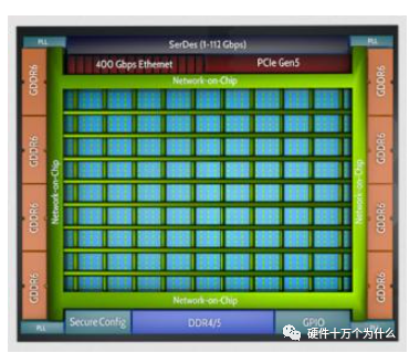 Achronix的Speedster7t FPGA集成了8个GDDR6的硬核,如图所示。