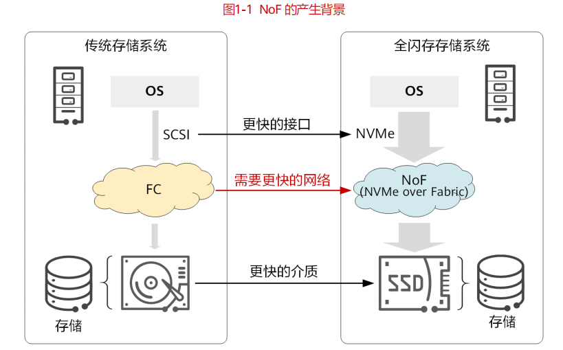 全场景闪存化推动了数据中心的网络改革,NVMe 最大化释放了 SSD 介质的能力。更快的存储呼吁更快的网络。NoF 存储网络应运而生,通过使用 IP 网络对专用网络的创新性革新,实现了更高的带宽和更低的时延,同时也兼具 IP 易管理的优势,是更好地实现端到端 NVMe 存储网络的最佳方案。
