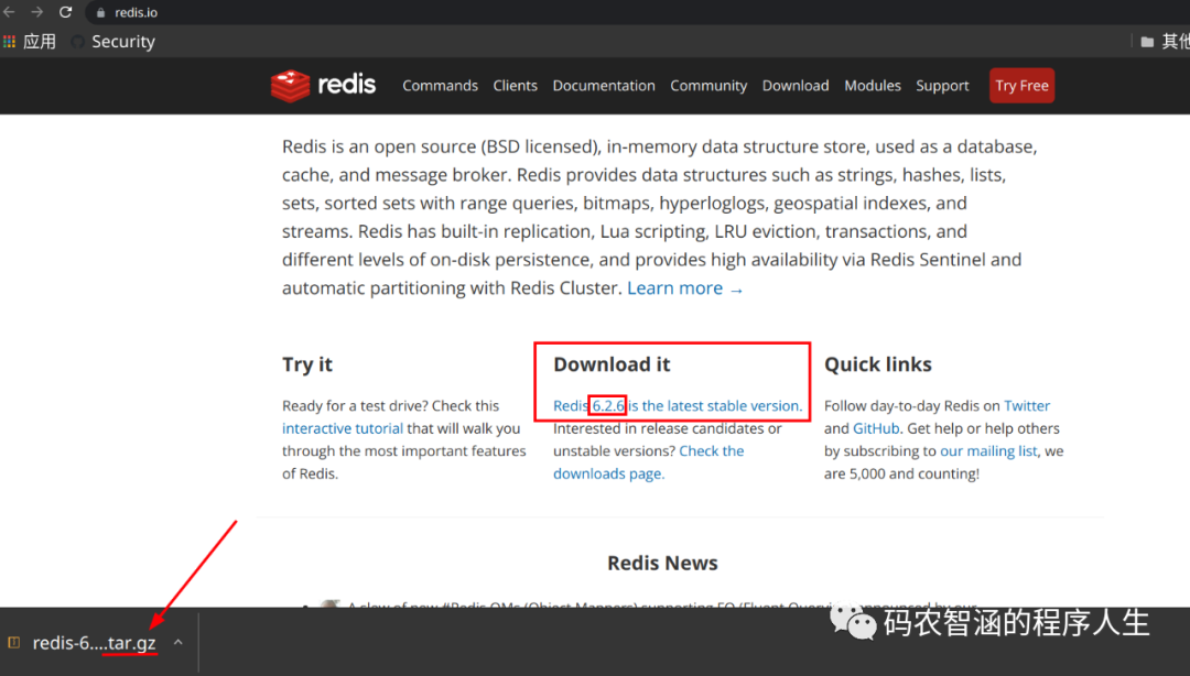 去到官方网站:https://redis.io/,下载Redis
