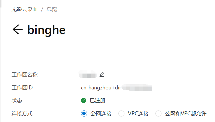 具体的配置过程可以参见链接:https://developer.aliyun.com/article/794339。这里,冰河就不再赘述了。配置好之后,需要下载无影客户端使用。首先我们在无影云桌面的总览里面找到工作区ID。
