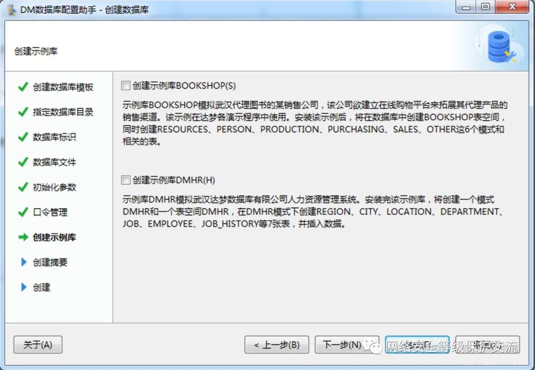 创建示例库,第一个为销售类表及数据,第二个为人力资源系统表及数据,为了给大家展示一下在达梦数据库中的展示效果以及数据效果,根据个人意愿随意选择,选择后点击