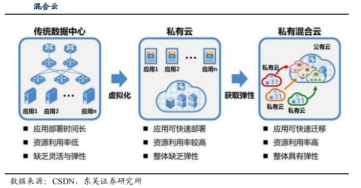 混合云对客户的好处是明显的。首先,每个企业都可能有云计算基础用量,但也可能有短期的激增需求。有了混合云,客户就可以围绕自己的基础用量采购自有 IT 资产,自己运营私有云,而短期波动的增量则可以通过公有云服务满足,等需求高峰过去,就可以去掉这部分的开支。企业也可以将运维难度比较低的基础云服务保留在自己的设施内,而同时使用公有云提供的复杂计算服务。