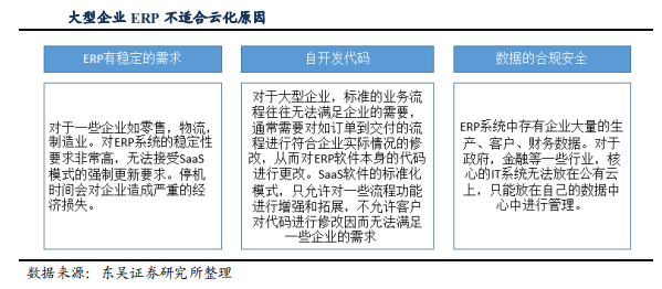 数字化转型是几乎所有企业的战略课题,而 ERP 建设则是数字化转型的核心课题,是所有企业高层关心的议事日程,它不仅是信息系统的升级换代,而是企业的业务和技术转型的战略。因此 ERP 对于大型企业不适合云化的主要有三点原因: