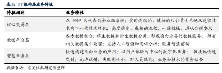 4.智慧业务层:大量的 SaaS 软件,例如人力资源管理软件 SF、workday,采购平台 Coupa、Ariba,控费管理软件 Concur ,并且将传统 On Premise 的部分应用改造为 SaaS;智慧业务层同时也包含了创新的数字化产品,由咨询集成商、第三方软件商、客户等开发或共创的数字化产品,其表现形式可以是移动 APP,也可以是物联网应用。