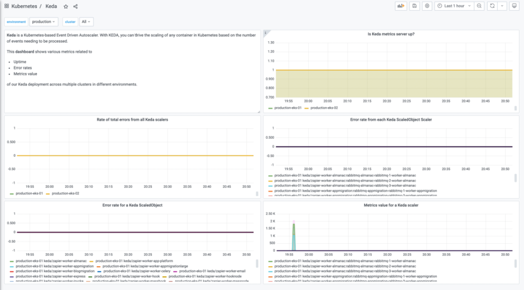 这种监控和警报设置帮助我们掌握来自 KEDA 控制器和伸缩器的任何错误。