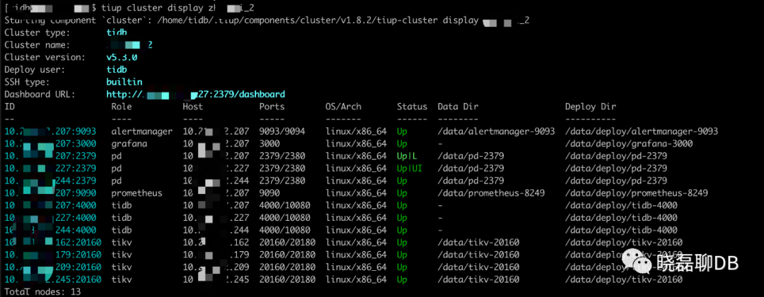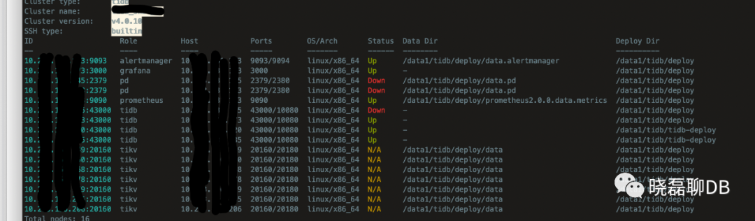 重启完毕PD,一定要tiup cluster display看下集群状态,尤其看看PD集群是否已经start成功。下面就是最最重要的环节,pd- recover恢复了
