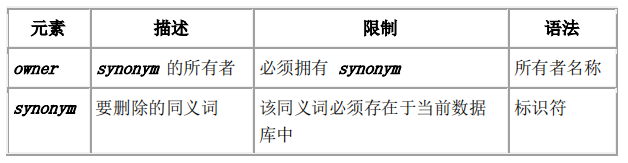 所有者或者拥有 DBA 特权才能执行 DROP SYNONYM 语句。删除同义词对同义词指向的表、视